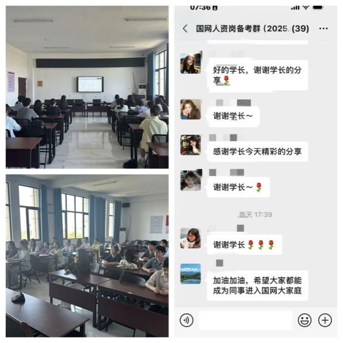 任士昕以“电力人资人的成长视角”为主线,系统介绍了国家电网的企业概况、业务板块、企业文化及组织架构,结合图示模型生动阐释了电网系统的运作机制。他还围绕国家电网的招聘政策、报考流程、笔试面试要点等关键环节,结合个人备考经历进行了细致讲解,为同学们提供了实用性强、参考价值高的备考指导。在互动环节,同学们积极提问,就非电专业报考条件、基层岗位发展路径等问题与校友深入交流,现场气氛热烈。